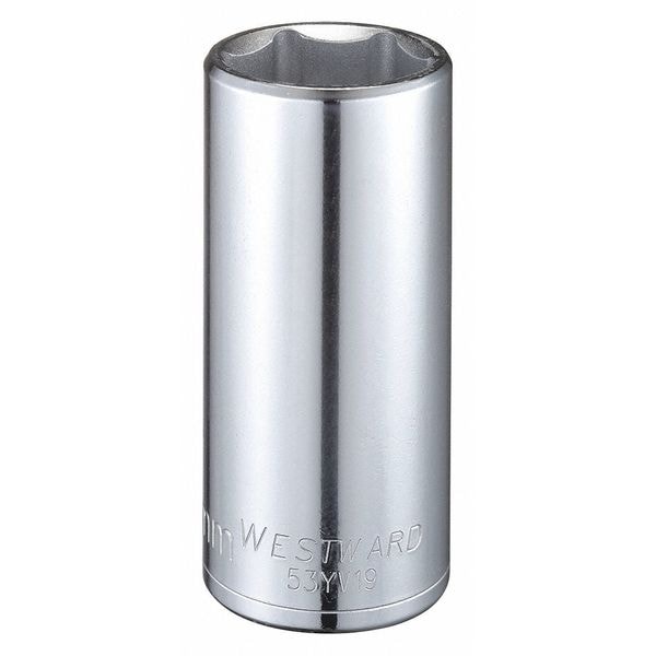 WESTWARD 1/2 in Drive, 28mm Hex Metric Socket, 6 Points, Steel, Chrome, 28 mm