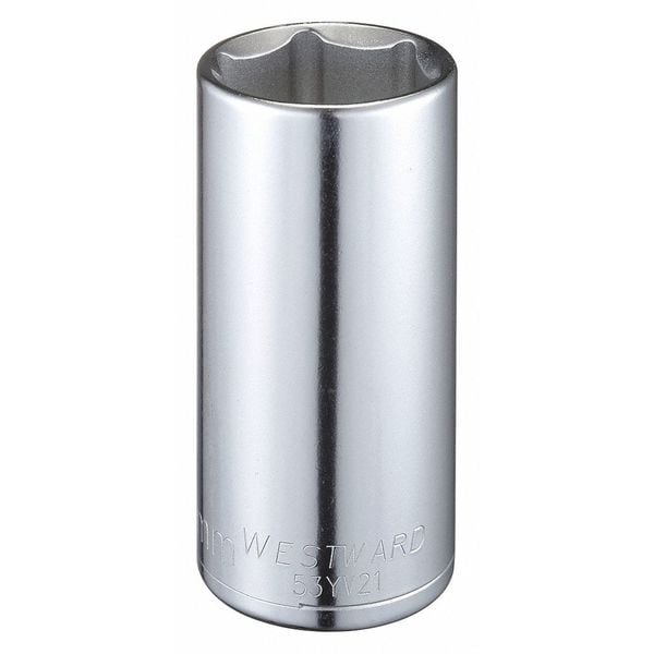 WESTWARD 1/2 in Drive, 30mm Hex Metric Socket, 6 Points, Steel, Chrome, 30 mm