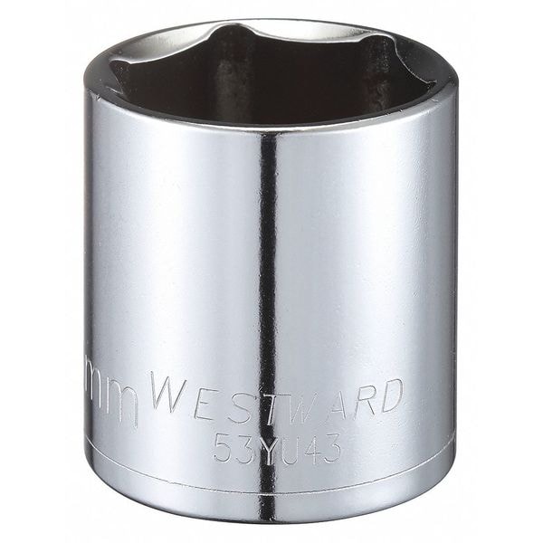 WESTWARD 1/2 in Drive, 32mm Hex Metric Socket, 6 Points, Steel, Chrome, 32 mm