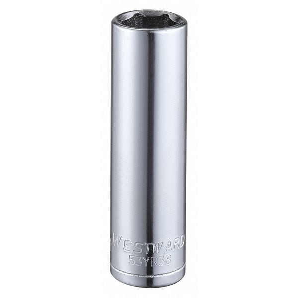 WESTWARD 1/4 in Drive, 10mm Hex Metric, Socket, 6 Points, Steel, Chrome, 10 mm