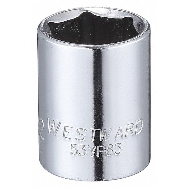 WESTWARD 1/4 in Drive, 1/2" Hex SAE Socket, 6 Points, Steel, Chrome, 1/2 in