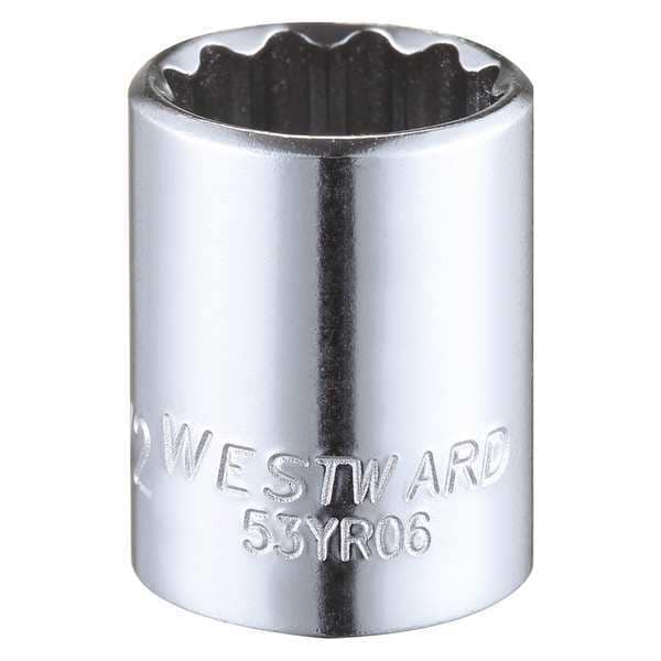 WESTWARD 1/4 in Drive, 1/2" Triple Square SAE Socket, 12 Points, Steel, Chrome, 1/2 in