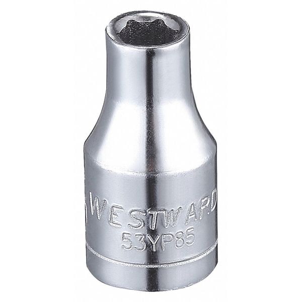 WESTWARD 1/4 in Drive, 4mm Hex Metric Socket, 6 Points, Steel, Chrome, 4 mm