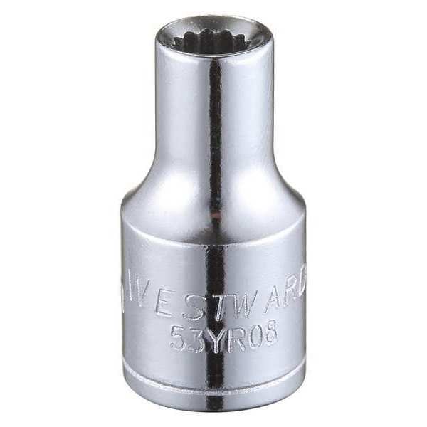 WESTWARD 1/4 in Drive, 4mm Triple Square Metric Socket, 12 Points, Steel, Chrome, 4 mm