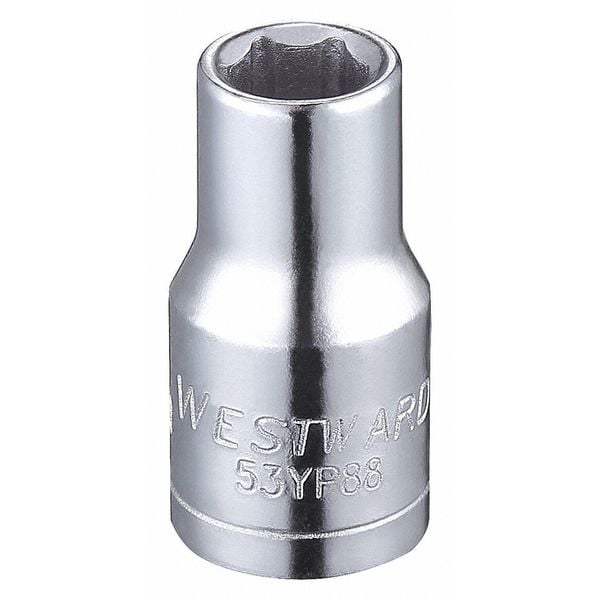 WESTWARD 1/4 in Drive, 5.5mm Hex Metric Socket, 6 Points, Steel, Chrome, 5.5 mm