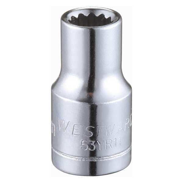 WESTWARD 1/4 in Drive, 5.5mm Triple Square Metric Socket, 12 Points, Steel, Chrome, 5.5 mm