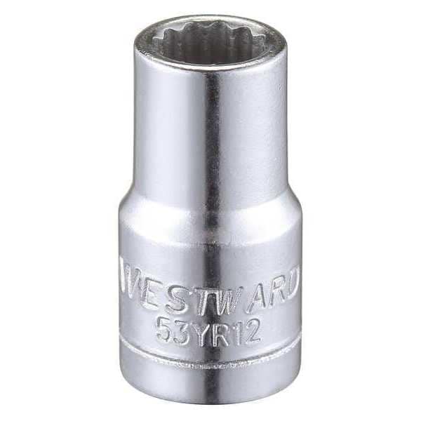 WESTWARD 1/4 in Drive, 6mm Triple Square Metric Socket, 12 Points, Steel, Chrome, 6 mm