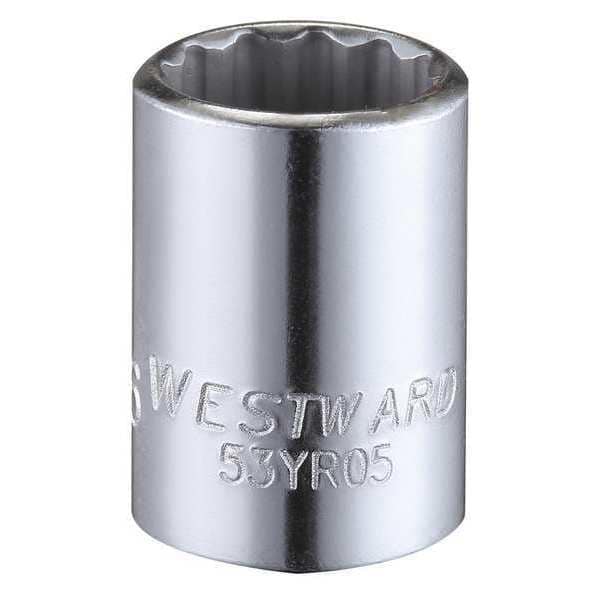 WESTWARD 1/4 in Drive, 7/16" Triple Square SAE Socket, 12 Points, Steel, Chrome, 7/16 in