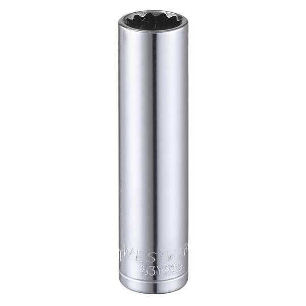 WESTWARD 1/4 in Drive, 9mm Triple Square Metric Socket, 12 Points, Steel, Chrome, 9 mm