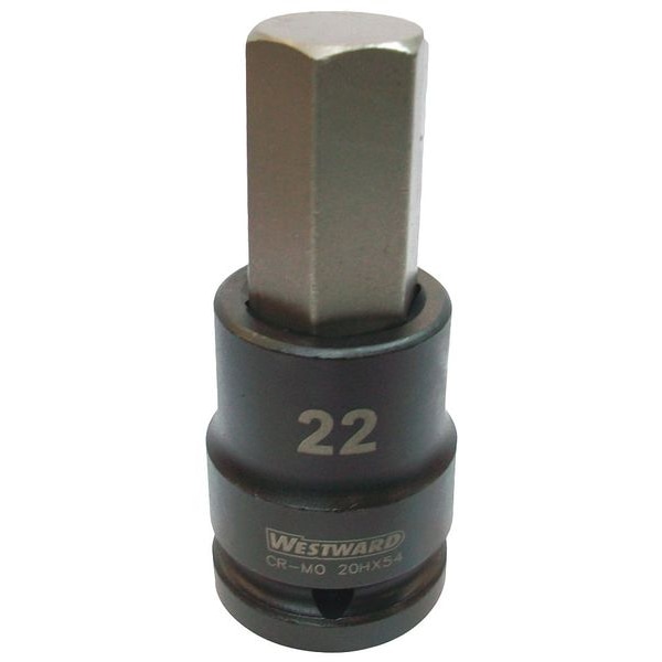 When you need to get the job done quickly, the Westward 3/4" Drive 22mm Impact Socket Bit is what you should be using. The 6-point design helps with fastening and loosening screws and bolts. This black oxide impact socket bit has a hex drive size of 3/4 in. and an overall length of 3 1/2 in. It has a 22mm size that makes it suitable for use on cars, motorcycles, trucks, tractors, etc. Made from alloy steel with a black oxide finish, this impact socket bit provides better torque quality than standard tools. The Westward Hex Socket Impact Socket Bit is designed to get the job done efficiently and effectively every time.