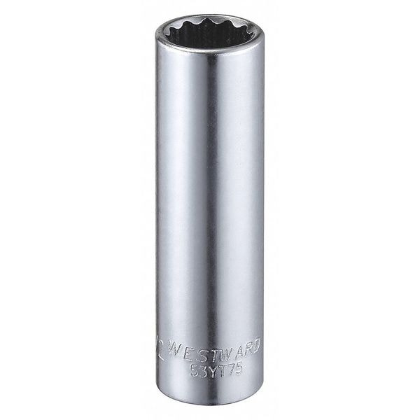 WESTWARD 3/8 in Drive, 1/2" Triple Square SAE, Socket, 12 Points, Steel, Chrome, 1/2 in