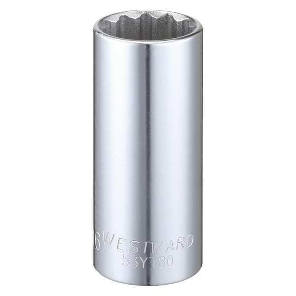 WESTWARD 3/8 in Drive, 13/16" Triple Square SAE Socket, 12 Points, Steel, Chrome, 13/16 in