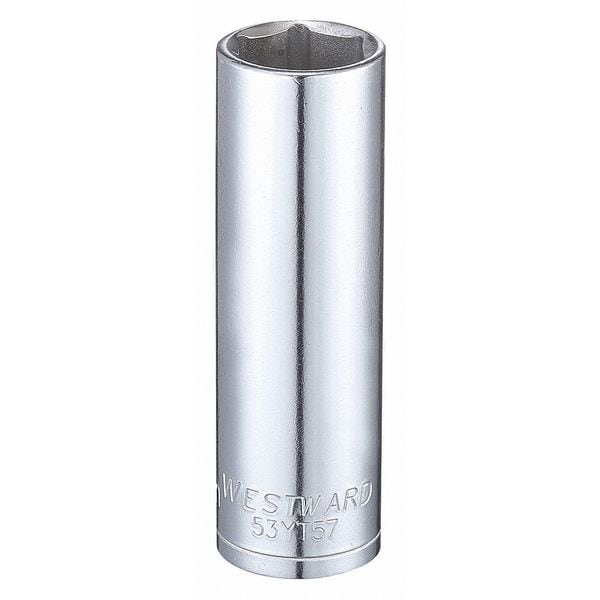 WESTWARD 3/8 in Drive, 14mm Hex Metric Socket, 6 Points, Steel, Chrome, 14 mm