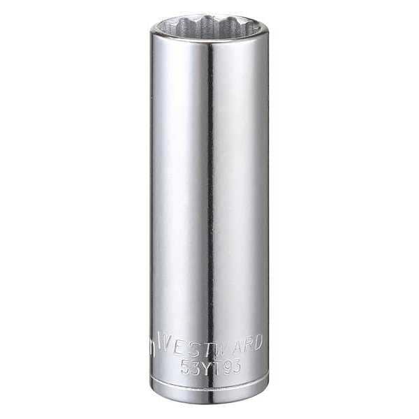 WESTWARD 3/8 in Drive, 15mm Triple Square Metric Socket, 12 Points, Steel, Chrome, 15 mm