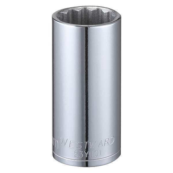 WESTWARD 3/8 in Drive, 22mm Triple Square Metric Socket, 12 Points, Steel, Chrome, 22 mm
