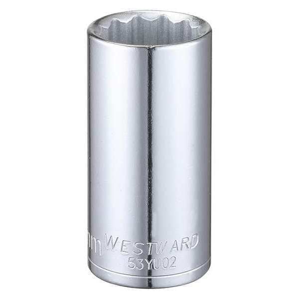 WESTWARD 3/8 in Drive, 23mm Triple Square Metric Socket, 12 Points, Steel, Chrome, 23 mm