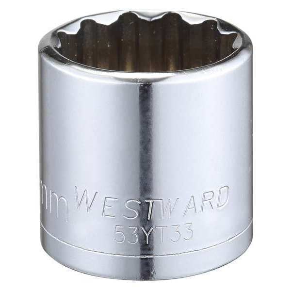 WESTWARD 3/8 in Drive, 25mm Triple Square Metric Socket, 12 Points, Steel, Chrome, 25 mm