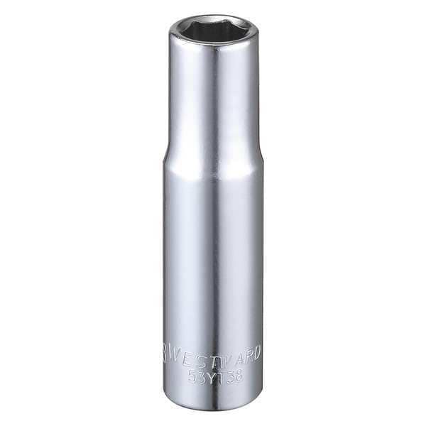 The Westward 53YT38 3/8" Drive, 6-Point Deep Socket is an essential tool for any workshop. The deep socket has a hex output type and a chrome finish. Made of alloy steel, the deep socket has a size of 3/8 in. and an overall length of 2 1/2 in. With six points, this drive has a drive size of 3/8 in., which makes it compatible with all types of sockets. This Westward Deep Socket will make your next project easier to complete.