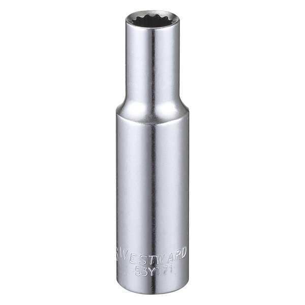 WESTWARD 3/8 in Drive, 5/16" Triple Square SAE Socket, 12 Points, Steel, Chrome, 5/16 in