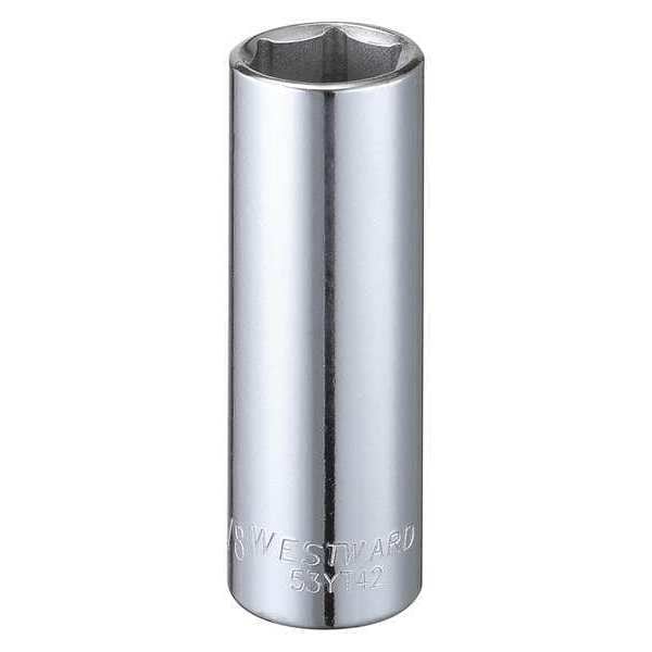 WESTWARD 3/8 in Drive, 5/8" Hex SAE Socket, 6 Points, Steel, Chrome, 5/8 in