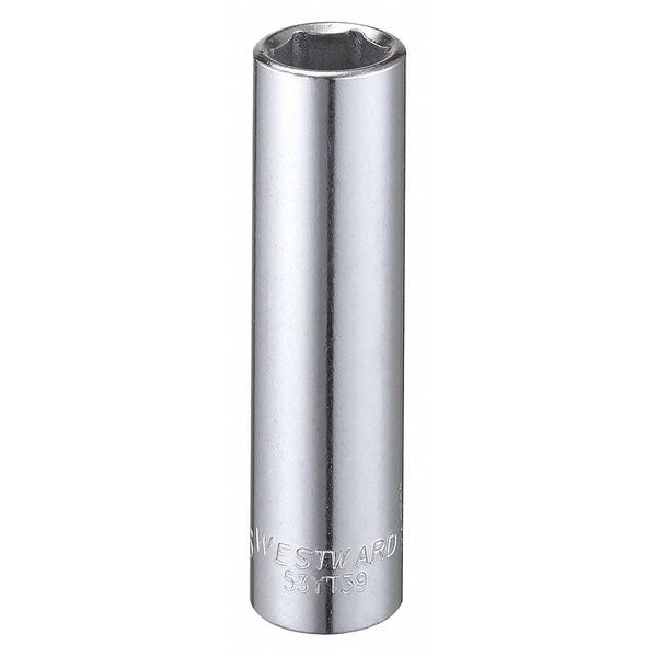 WESTWARD 3/8 in Drive, 7/16" Hex SAE Socket, 6 Points, Steel, Chrome, 7/16 in