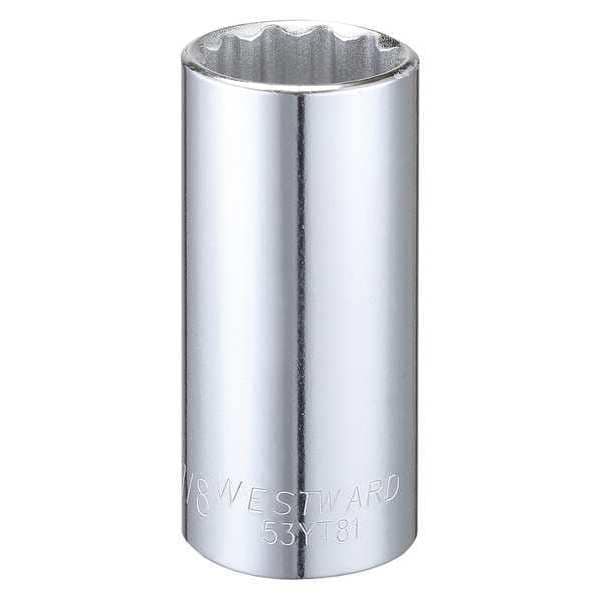 WESTWARD 3/8 in Drive, 7/8" Triple Square SAE, Socket, 12 Points, Steel, Chrome, 7/8 in