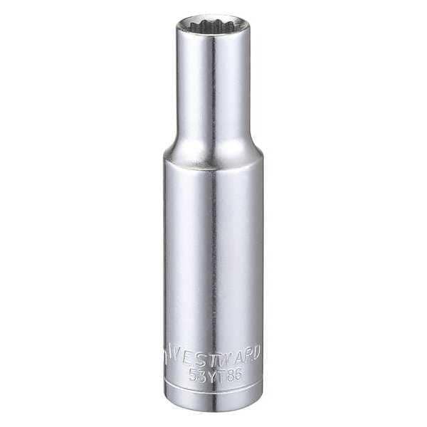 WESTWARD 3/8 in Drive, 8mm Triple Square Metric Socket, 12 Points, Steel, Chrome, 8 mm