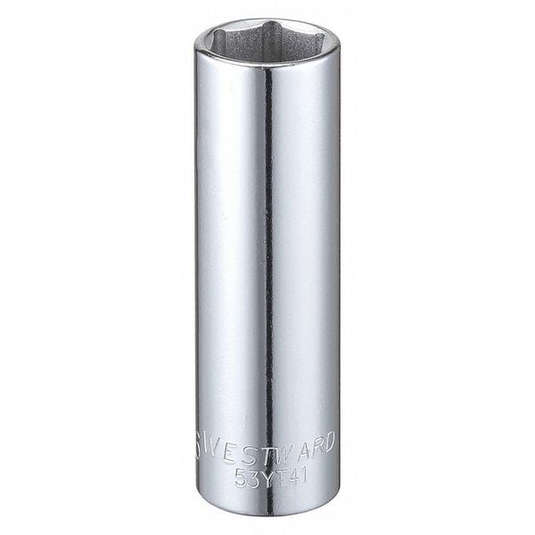 WESTWARD 3/8 in Drive, 9/16" Hex SAE Socket, 6 Points, Steel, Chrome, 9/16 in