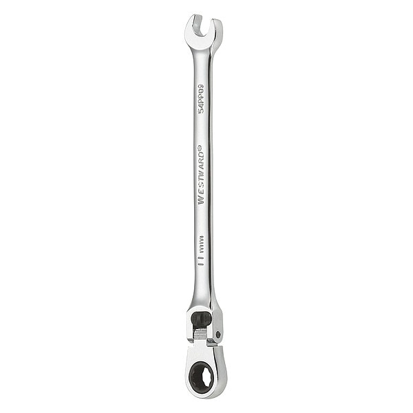 Ratcheting Wrench, Alloy Steel, Chrome, Head Size 11 mm, Overall Length 7 1/8 in, Head Offset Angle 0 Degrees , Flexible, Head Thickness 5/16 in, Metric, Rounded