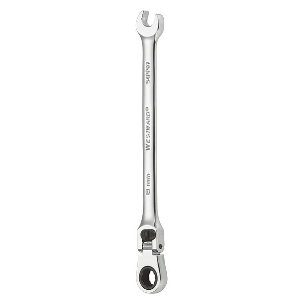Ratcheting Wrench, Alloy Steel, Chrome, Head Size 8 mm, Overall Length 5 3/4 in, Head Offset Angle 180 Degrees , Opening Angle (Deg.) 15 Degrees , Flexible, Head Thickness 1/4 in, Metric, Rounded