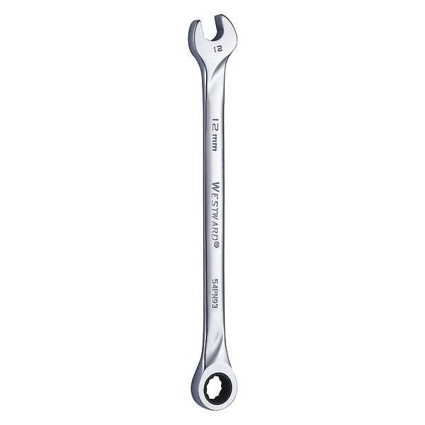 Ratcheting Wrench, Alloy Steel, Chrome, Head Size 12 mm, Overall Length 8 in, Head Offset Angle 0 Degrees , Opening Angle (Deg.) 15 Degrees , Standard, Head Thickness 5/16 in, Metric, Rounded