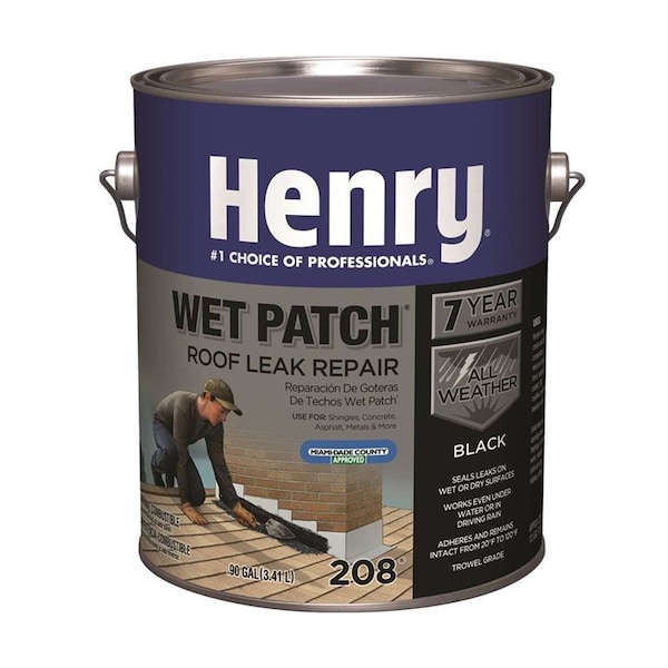 Henry 208R Rubberized Wet Patch Roof Leak Repair is the premium SBS modified bitumen compound for sealing roof leaks on wet surfaces. Made from heavy-bodied asphalt, Henry 208R Rubberized Wet Patch Roof Leak Repair patches holes and cracks even in a driving rain or under water and is so versatile it may be used whether the weather is wet, dry, hot or cold. It is especially easy to spread in cold temperatures.