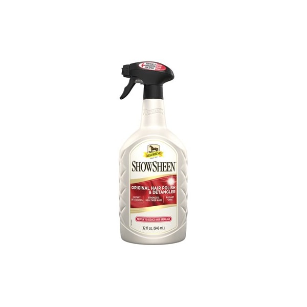 Showsheen, 32 OZ, Hair Polish Detangler, Formulated To Provide The Serious Horse Owner With An Unsurpassed MultiPurpose Grooming Aid, Coats Each Hair Shaft To Keep Manes Tails Tangle Free, While Its Conditioning Action Reduces Static Fly Aways, Coat Becomes Smooth Sleek, Accentuating The Body Tone Definition, Repels Dust, Dirt, Stains, Protecting Your Grooming Job Keeping Your Horse Cleaner Longer, Can Reduce Grooming Time By As Much As 80