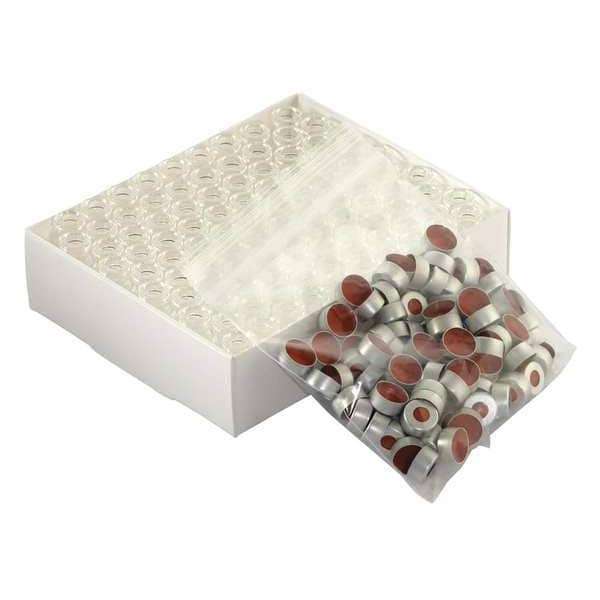 Autosampler Vial, Capacity - Metric 0.3 mL, Capacity - English 0.01 fl oz, Body Diameter - Metric 12 mm, Product Type Vial, Vial Type Sample, Body Material Borosilicate Glass, Includes Closure Yes, Closure Liner Material PTFE/Rubber, Neck Size 11 mm, Body Color Clear, Glassware Class A, Overall Height - Metric 32 mm, Number of Vials Included 100, Basic Material Glass, Special Features Writing Patch on all Vials, Clarity Transparent, Graduated Yes, Closure Liner Design Crimp Top