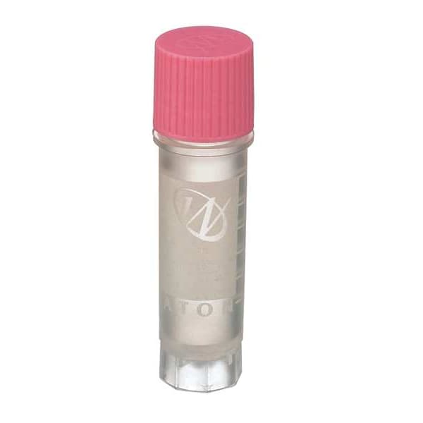 Cryogenic Vial, Capacity - Metric 2 mL, Capacity - English 0.06 fl oz, Body Diameter - Metric 12 mm, Product Type Vial, Vial Type Cryogenic, Body Material HDPE, Includes Closure Yes, Closure Material Polypropylene, Sterile/Non-Sterile Sterile, Body Color Pink, Overall Height - Metric 49 mm, Number of Vials Included 500, Basic Material Plastic