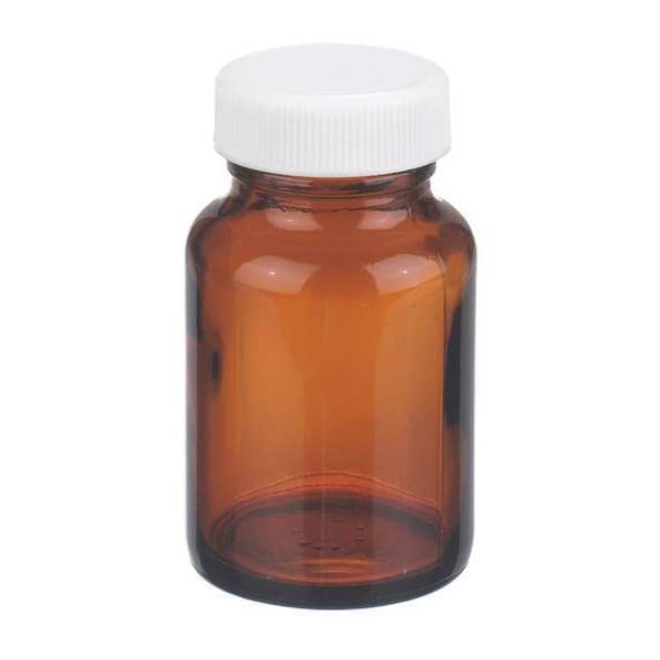 Bottle, Body Color Amber, Body Diameter - Metric 44 mm, Capacity - Metric 60 mL, Capacity - English 2 fl oz, Overall Height - Metric 75 mm, Closure Included Yes, Closure Liner Material Polyvinyl, Screw Closure Size 33-400 mm, Closure Color White, Mouth Size Wide, Autoclavable No, Graduated No, Sterile/Non-Sterile Non-Sterile, Graduation Increments - Metric Not Applicable, USP Specification Type III, Closure Material Polypropylene