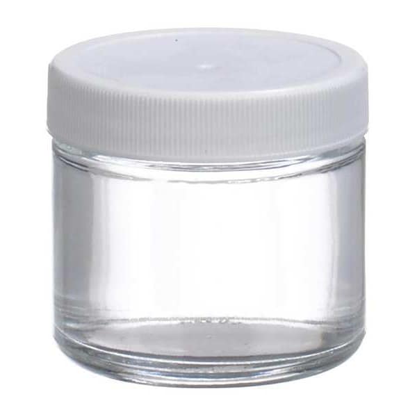 Jar, Capacity - Metric 60 mL, Capacity - English 2 fl oz, Closure Included Yes, Closure Liner Material Pulp/Vinyl, Body Diameter - Metric 55 mm, Body Material Soda Lime Glass, Overall Height - Metric 48 mm, Screw Closure Size 53-400 mm, Closure Type Tamper Evident, Closure Material Polypropylene, Closure Color White, Body Color Clear, Mouth Size Wide, Jar Type Sampling, Clarity Transparent, Special Features Not Applicable, Basic Material Glass, Shape Round, USP Specification Type III