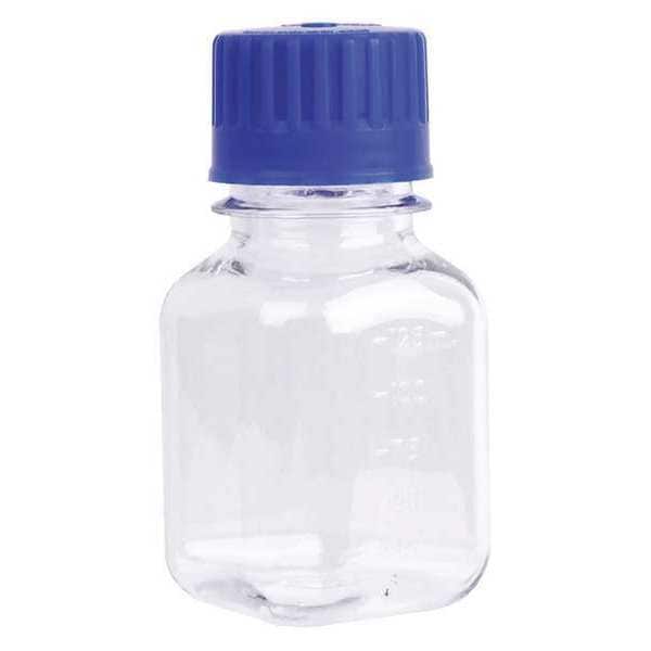 Media Bottle, Body Color Clear, Body Material PETG, Bottle Type Media, Capacity - Metric 125 mL, Capacity - English 4.22 fl oz, Overall Height - Metric 109.4 mm, Clarity Transparent, Closure Included Yes, Closure Liner Material Unlined, Screw Closure Size 38-430 mm, Closure Color Blue, Mouth Size Wide, Autoclavable No, Graduated No, Sterile/Non-Sterile Sterile, Graduation Increments - Metric Not Applicable, Closure Material Polypropylene