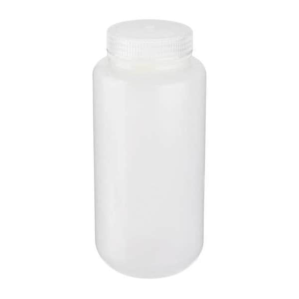 Bottle, Body Color Natural, Body Material HDPE, Body Diameter - Metric 91 mm, Bottle Type Laboratory, Capacity - Metric 1 L, Capacity - English 32 fl oz, Overall Height - Metric 199 mm, Clarity Translucent, Closure Included Yes, Closure Liner Material Unlined, Screw Closure Size 63-415 mm, Mouth Size Wide, Autoclavable No, Graduated No, Sterile/Non-Sterile Non-Sterile, Pre-Cleaned None, Graduation Increments - Metric Not Applicable, Closure Material Polypropylene