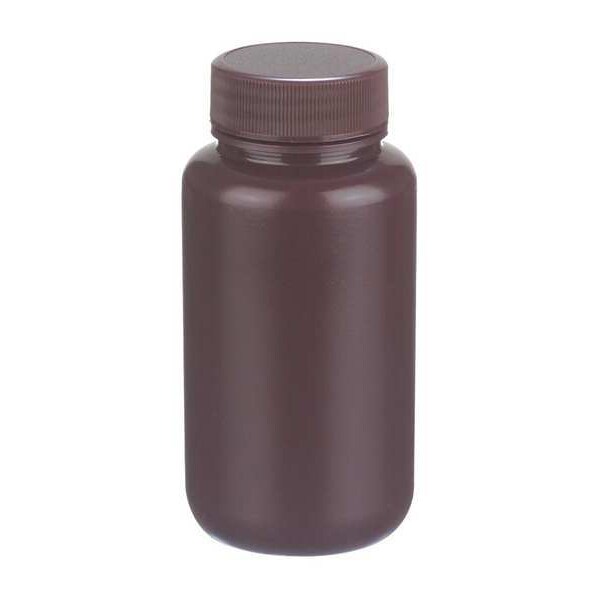 Bottle, Body Color Amber, Body Material HDPE, Body Diameter - Metric 61 mm, Bottle Type Laboratory, Capacity - Metric 250 mL, Capacity - English 8 fl oz, Overall Height - Metric 125 mm, Clarity Opaque, Closure Included Yes, Closure Liner Material Unlined, Screw Closure Size 43-410 mm, Mouth Size Wide, Autoclavable No, Graduated No, Sterile/Non-Sterile Non-Sterile, Pre-Cleaned None, Graduation Increments - Metric Not Applicable, Closure Material Polypropylene