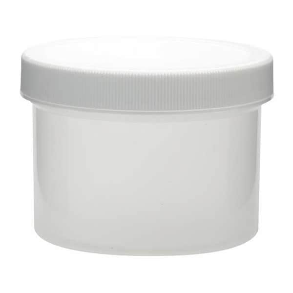 Jar, Capacity - Metric 250 mL, Capacity - English 8.5 fl oz, Closure Included Yes, Closure Liner Material Polyethylene, Body Diameter - Metric 84 mm, Body Material Polypropylene, Overall Height - Metric 64 mm, Screw Closure Size 89-400 mm, Autoclavable No, Closure Type Screw On, Closure Material Polypropylene, Closure Color White, Body Color White, Mouth Size Wide, Basic Material Plastic, Shape Round, Package Quantity 36