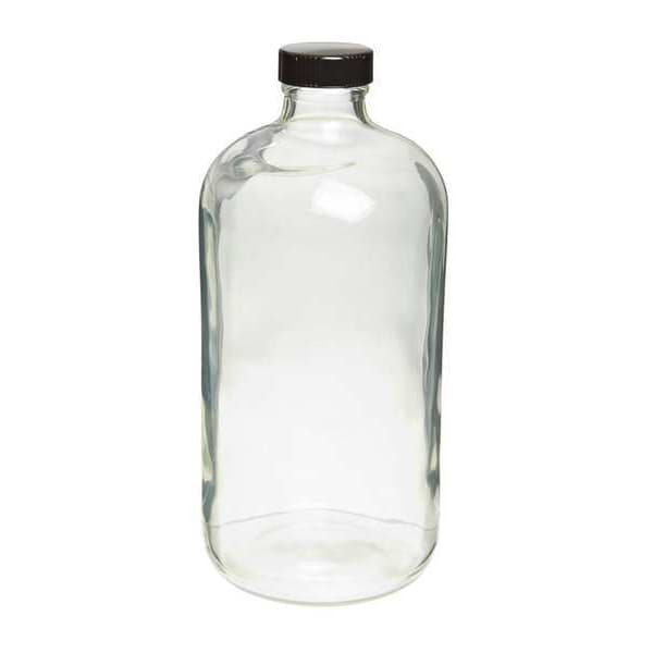 Safety Coated Bottle, Body Color Clear, Body Diameter - Metric 98 mm, Capacity - Metric 1 L, Capacity - English 32 fl oz, Overall Height - Metric 212 mm, Closure Included Yes, Screw Closure Size 33-400 mm, Closure Color Black, Mouth Size Narrow, Autoclavable No, Graduated No, Sterile/Non-Sterile Non-Sterile, Graduation Increments - Metric Not Applicable, USP Specification Type III, Closure Material Phenolic