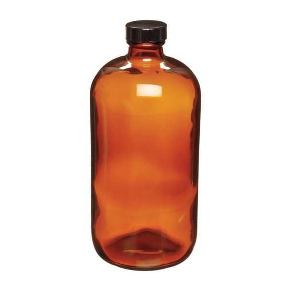 Safety Coated Bottle, Body Color Amber, Body Diameter - Metric 98 mm, Capacity - Metric 1 L, Capacity - English 32 fl oz, Overall Height - Metric 212 mm, Closure Included Yes, Screw Closure Size 33-400 mm, Closure Color Black, Mouth Size Narrow, Autoclavable No, Graduated No, Sterile/Non-Sterile Non-Sterile, Graduation Increments - Metric Not Applicable, USP Specification Type III, Closure Material Phenolic