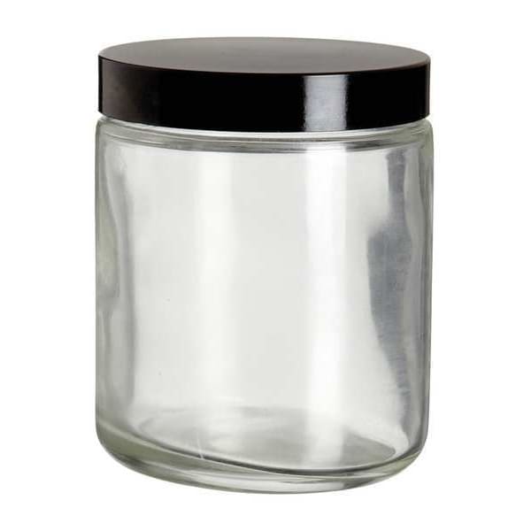 Safety Coated Jar, Capacity - Metric 250 mL, Capacity - English 8.5 fl oz, Closure Included Yes, Closure Liner Material Pulp/Vinyl, Body Diameter - Metric 77 mm, Body Material Soda Lime Glass, Overall Height - Metric 91 mm, 94 mm, Screw Closure Size 70-400 mm, Closure Type Screw On, Closure Material Phenolic, Closure Color Black, Body Color Clear, Mouth Size Wide, Clarity Transparent, Special Features Non-Slip Coating Allows for Greater Ease and Stability When Handling Wet or Dry