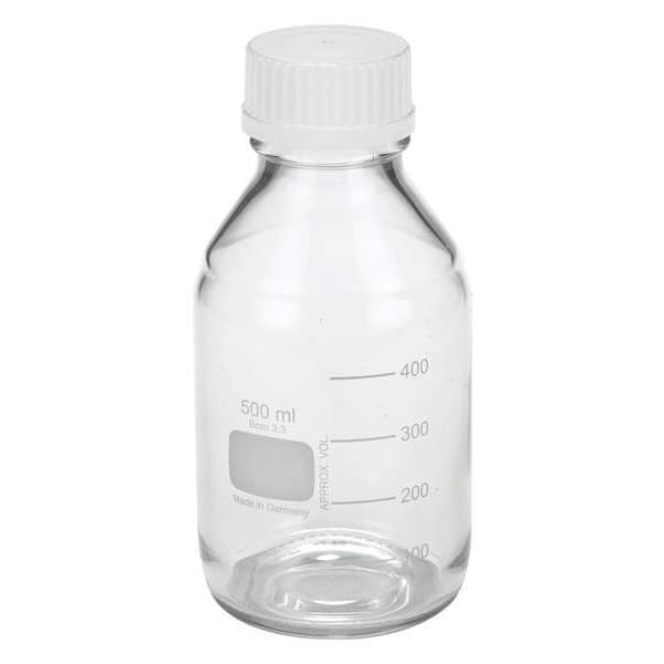 Safety Coated Media Bottle, Body Color Clear, Body Diameter - Metric 86 mm, Bottle Type Media, Capacity - Metric 500 mL, Capacity - English 16.9 fl oz, Overall Height - Metric 186 mm, Closure Included Yes, Closure Liner Material Unlined, Closure Color White, Mouth Size Wide, Autoclavable Yes, Graduated No, Sterile/Non-Sterile Non-Sterile, Graduation Increments - Metric Not Applicable, USP Specification Type I, Closure Material Polypropylene