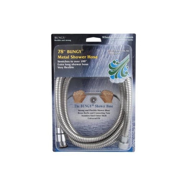 78, Bungy Metal Stretch Shower Hose, Stretches To Over 100 For Complete Tub Area Coverage, Stainless Steel Outer Shell With Brass Barbs No Kink Swivel Connection, Chrome Plated Brass Nuts With Universal Conical Nut, Works With Most Hand Shower Systems