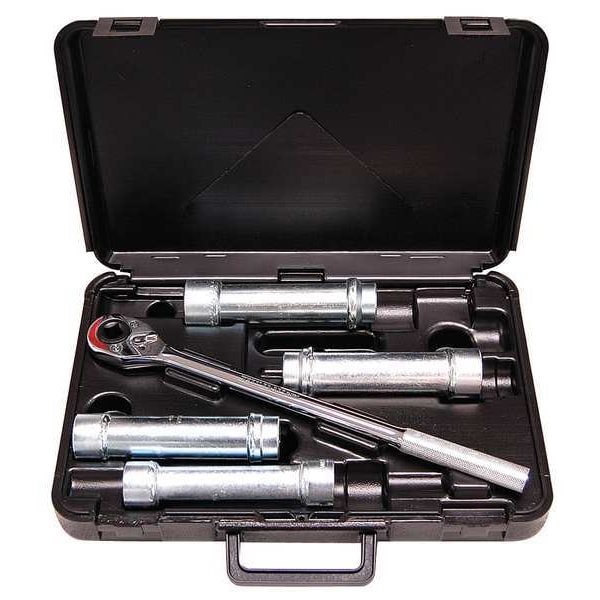 The WHEELER-REX - 964 Deep Socket Set is a comprehensive toolset designed for various applications. It includes three standard sockets and three deep sockets, all with sizes ranging from 1 1/16 in to 1 1/4 in. The set also features a pear head ratchet of an impressive length of 11 inches. Each socket has been crafted to accommodate nuts as the compatible fastener type, making it suitable for tasks that require such specifications.