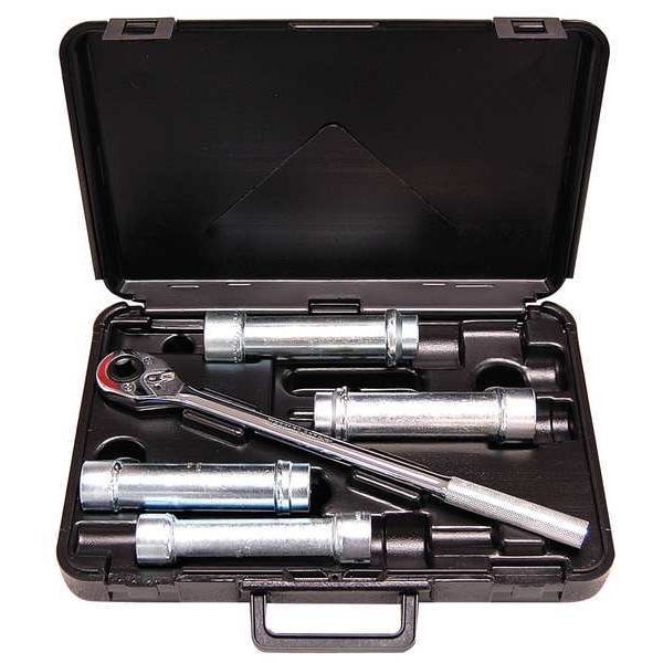 This five-piece kit comes neatly packed within a plastic case featuring molded fit container attributes for secure storage and easy transportability. With dimensions measuring at an ample container length of eleven inches, width fifteen inches, and height three-and-a-half inches; it's suitable for keeping your workspace organized while also being portable enough for on-the-go tasks. While this set does not include drive tools or ratchets, it is compatible with any half-inch drive type tools you may already own or plan to purchase separately.