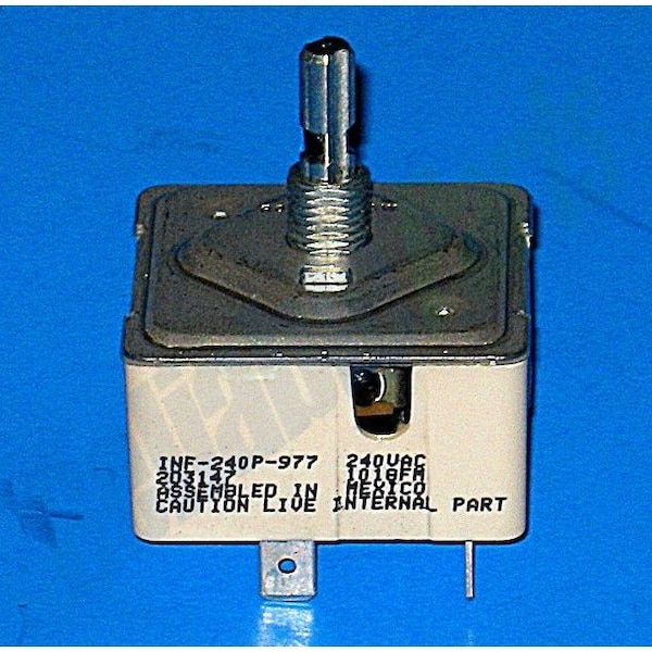 This Electric Range Surface Element Control Switch turns the surface element on and off and controls how much heat the element produces. This control switch also called the infinite switch is for a single element and features a nut-mounted double flat shaft. If your element remains at high heat or doesn't turn on at all, the surface element switch may have become damaged and replacing it may alleviate the issue. Installing this part will require basic hand tools, some disassembly of the range and novice repair experience. Remember to unplug the range or shut off the house circuit breaker for the appliance before installing this item.This product is a Factory Certified Part. These three words represent quality parts and accessories designed specifically for your appliance. Time tested engineering that meets our strict quality specifications. This product is a replacement part. Package contains 1 Electric Range Surface Element Control Switch. Tools Needed: Multi screwdriver