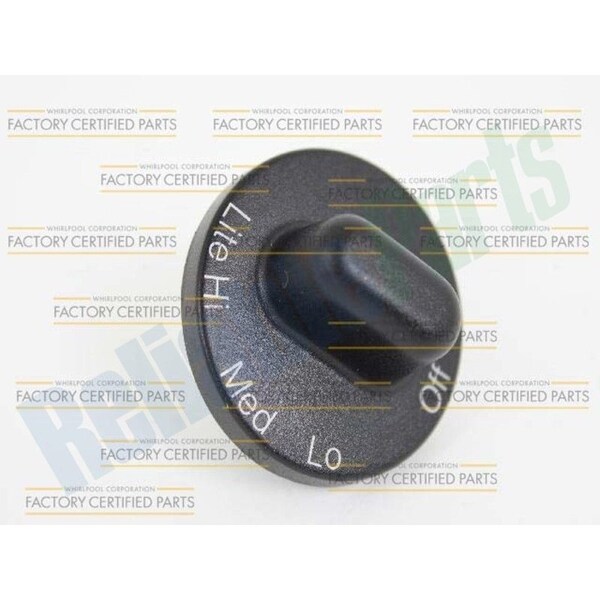 The Gas Range Surface Control Knob allows you to adjust the heating level of your gas cooktop surface burner. This knob is black in color and measures approximately 2 D. The part is labeled with the words Lite,in inHi,in Loin and inOff.in Remove the old knob by pulling it straight off its post. Remove the old knob by pulling it straight off its post. Replacing this part will require no tools, disassembly or repair experience.This product is a Factory Certified Part. These three words represent quality parts and accessories designed specifically for your appliance. Time tested engineering that meets our strict quality specifications. This product is a replacement part. Package contains 1 Gas Range Surface Control Knob, Black. No tools required for installation